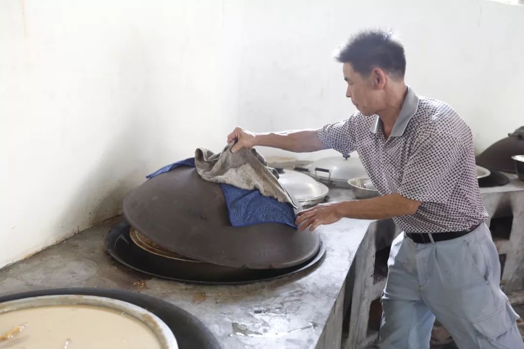 一字排开烧得正旺的柴火灶,并排摆放在桌面上等待冷却的圆笼粄,这是李叔家最近半个月以来忙碌的主要对象。
