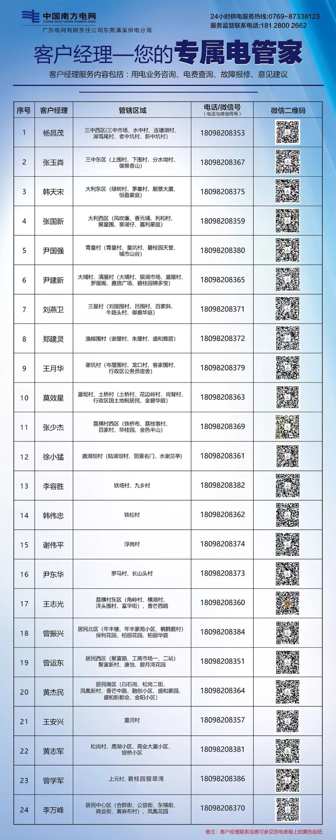 附上清溪供电客户经理名单,欢迎致电咨询哟!▼