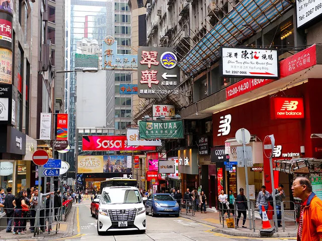 这里是香港最繁忙的商业区。叮叮车行驶缓慢,经过之处可听到车轴与轨道摩擦发出的“哐当哐当”声响,每当停站,必先发出“叮叮叮”的提示音。