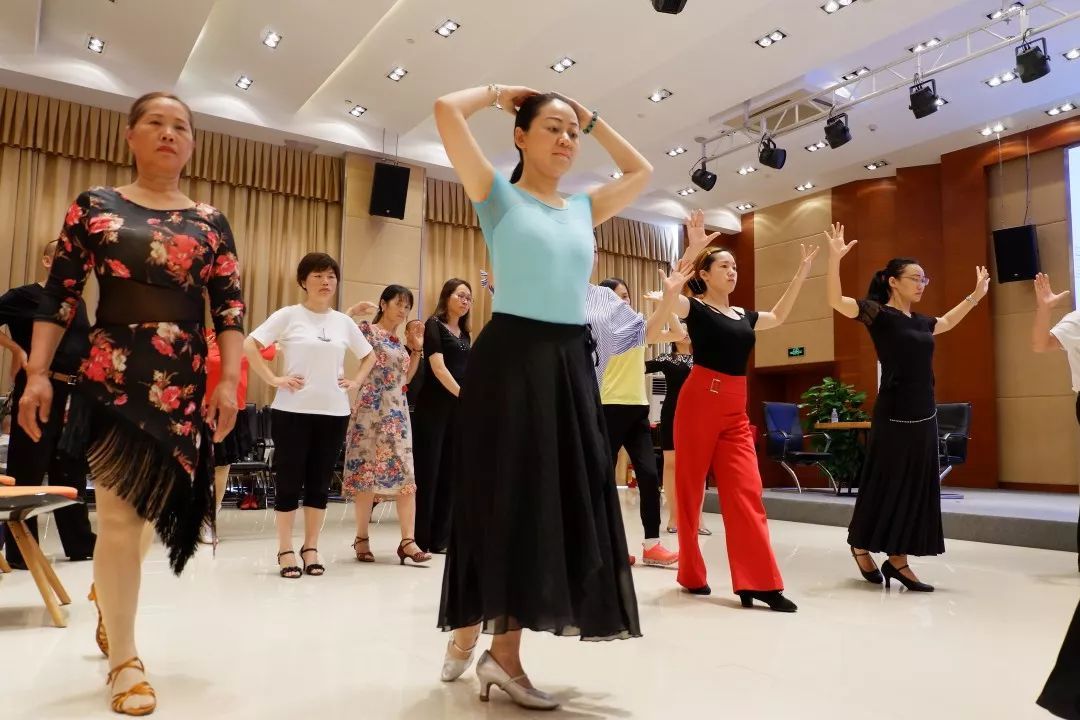 身穿着舞服,手搭舞伴,迈着轻盈的舞步,舞者们有节奏的在音乐中翩翩起舞,一场高品味、又接地气的国标舞讲座丰富了园区群众的周末文化生活。