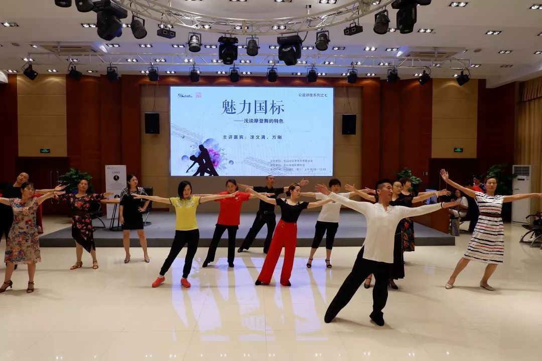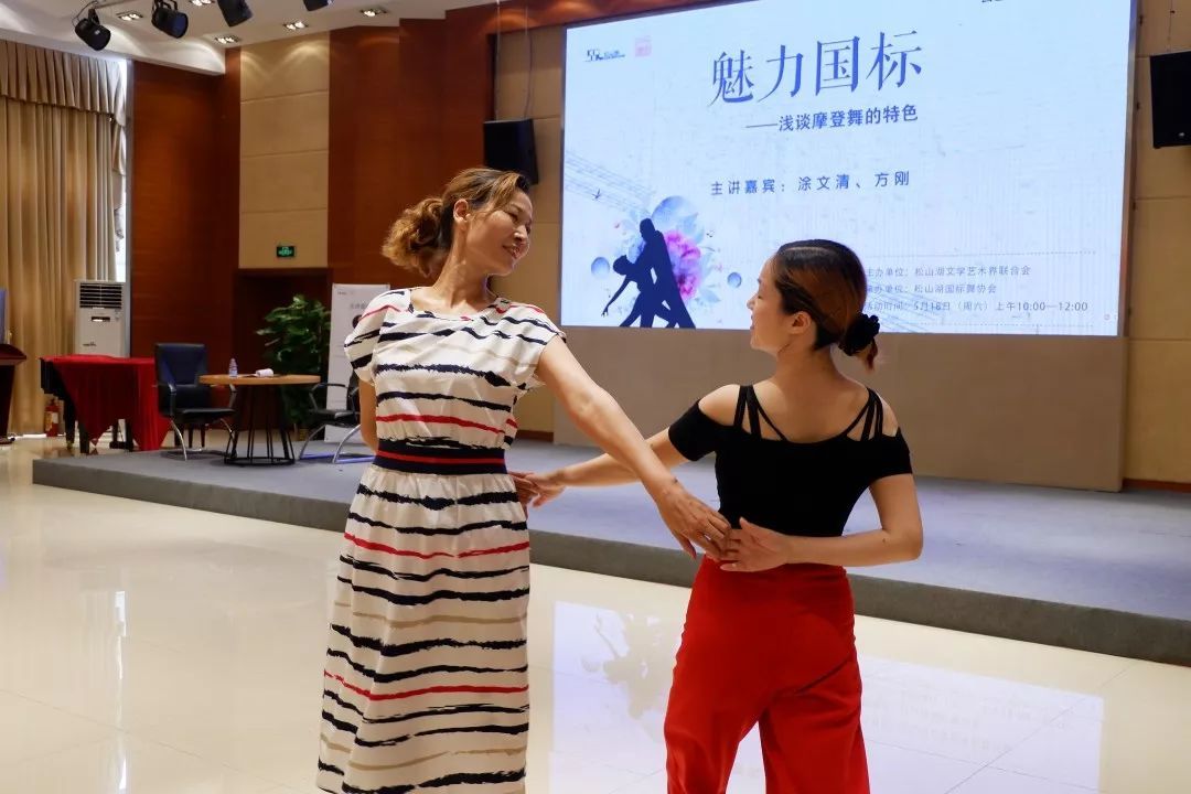 5月18日,2019年松山湖文联公益讲座之“魅力国标——浅谈摩登舞的特色”在松山湖学术交流中心举行。现场邀请到东莞市国标舞协会摩登舞老师兼技术顾问涂文清老师与石龙镇国际标准舞分会副会长方刚老师,带领来到现场的舞蹈爱好者们以及松山湖国标舞协会会员们走进律动跳跃的国标舞世界,体验舞蹈中节奏分明的浪漫旋转。