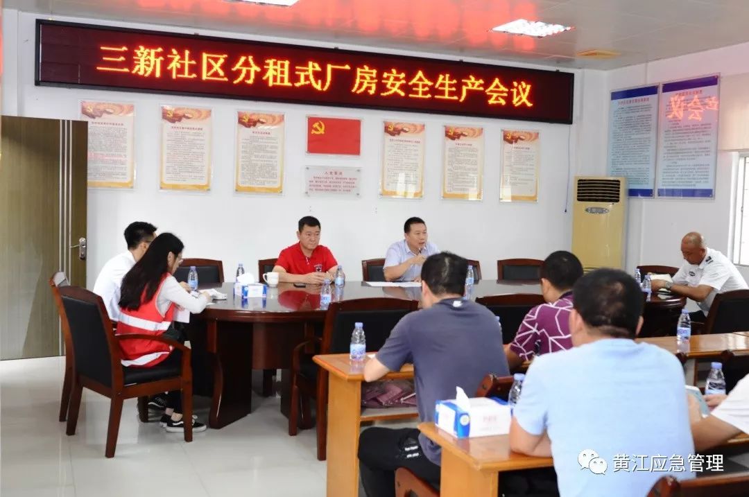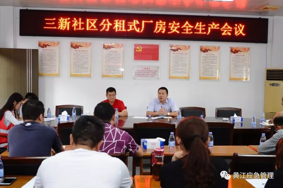 4月18日上午,黄江镇安委办率先在三新社区组织召开分租式厂房安全生产会议,会议由镇安委办副主任叶国辉主持,三新社区安全办相关负责人、专职安全员及三新社区分租式厂房二手房东参加会议。