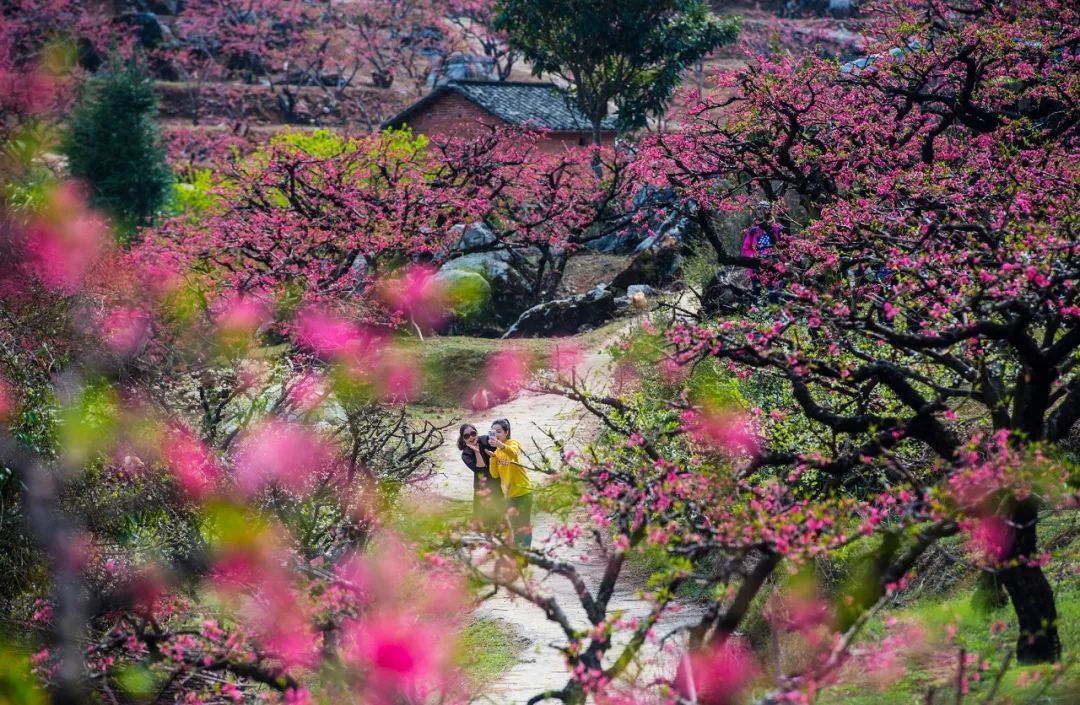 连平桃花。连平水蜜桃产于河源市连平县上坪镇。九连山脉特殊的自然条件、典型的亚热带气候、丰富的水土资源,使之成为华南地区最大的蜜桃种植基地。