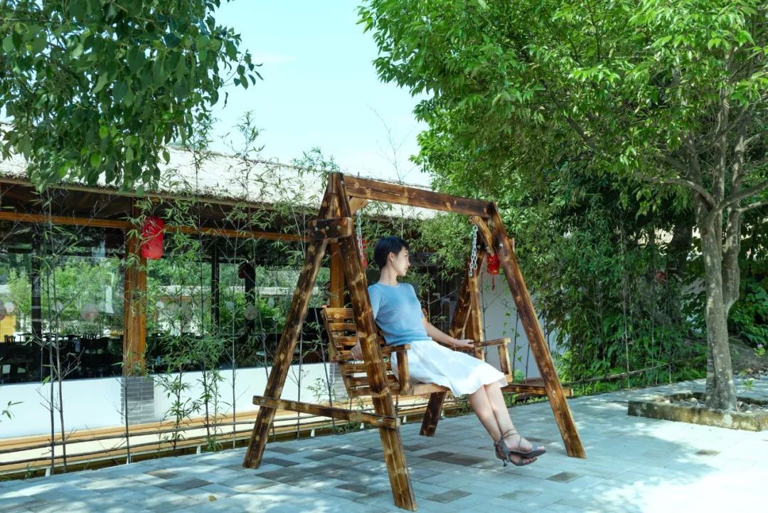 康汇·酒坊民宿。民宿里的麻石条、石墩、水车、无不体现客家文化的氛围,就连屋顶都是用农村的老房子原本的瓦片建造的,为的就是还原客家味道的点点滴滴。