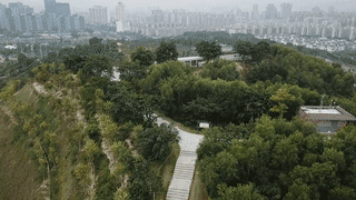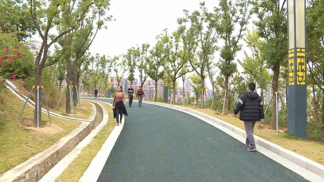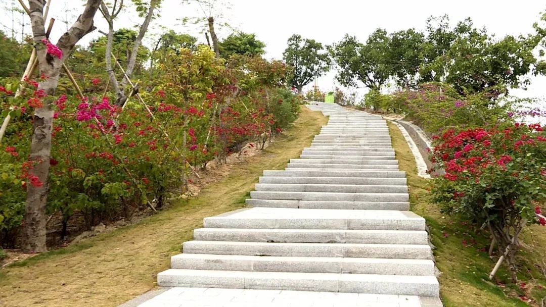 道路两旁种有香樟、木棉,视线开阔的山坡披上了植被外衣,让市民能观赏到四季有景的绚丽画面,除此之外,客家文化公园三期还增加了更多登山道、观景平台。