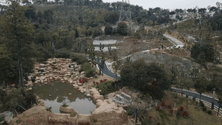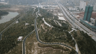 据客家文化公园三期施工方现场负责人介绍,登山道和园路共计4.5公里左右可供市民休闲散步,共有17个平台可供市民观光,共有7个避雨亭分布在平台内,供市民避雨遮阳,一号平台处还有一个五米高的瀑布。