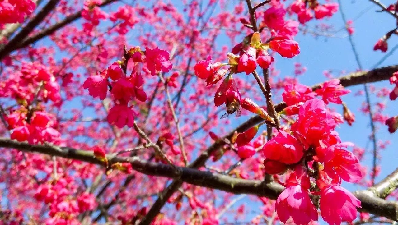 樱花会随着季节天气变化而变化,目前部分较为茁壮的樱花已经完全盛开,但大部分仍是花苞,花期一般长达两个月左右,所以春节期间是最佳赏花期。