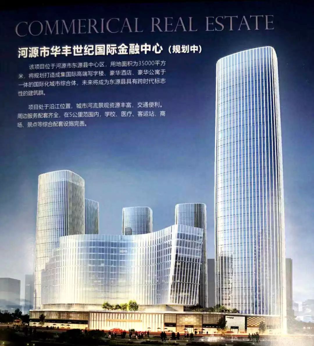 据悉,华丰世纪 · 国际贸易中心定位高端,定位是河源新型国际贸易中心。项目位于东源县城中心区及生活配套区(东源大桥头),坐拥无敌江景,占地面积35000平方米,容积率4.3,限高200米。业态涵盖展会中心、五星级酒店、智慧公寓、甲级写字楼等,堪称国际视野,城市中心。