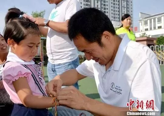 便是在孩子手腕、脚腕、脖子上拴五色线