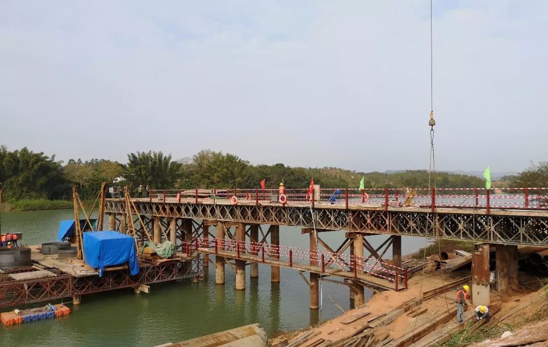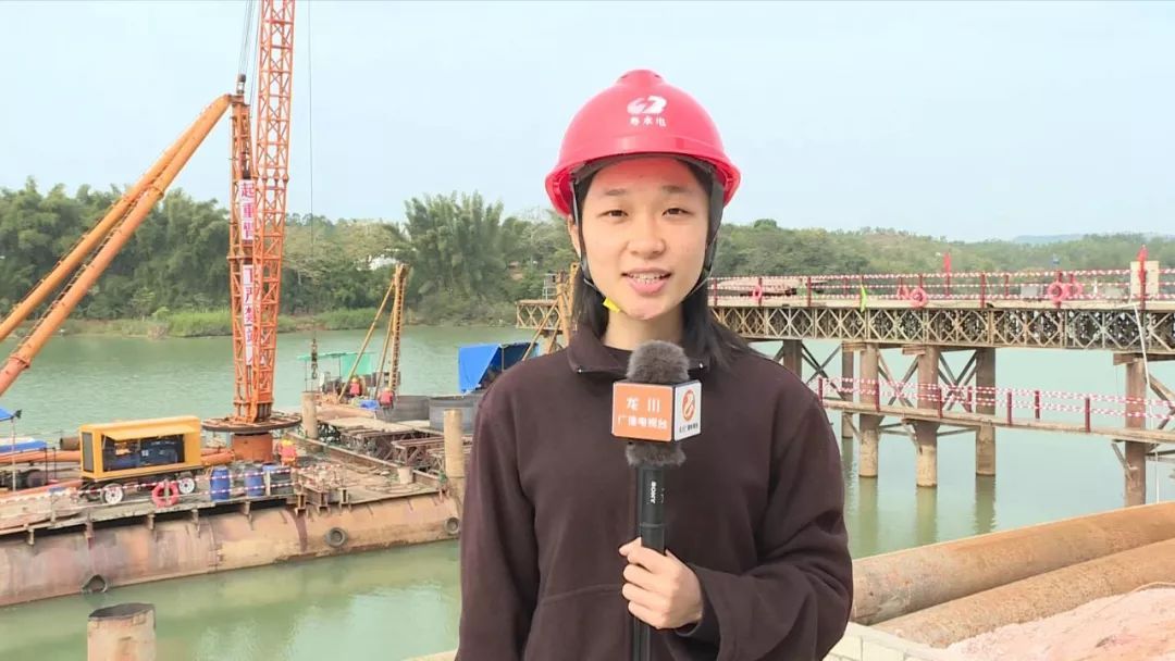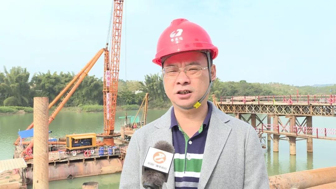 这个桥的主跨是140米的挂篮施工,现在是有8台桩机在施工作业,其中有4台是陆上施工。接下来,整个东江桥我们预定的工期是24个月,我们争取在明年的汛期之前把水下部分,包括桩基、承台全部都在汛期之前出水。