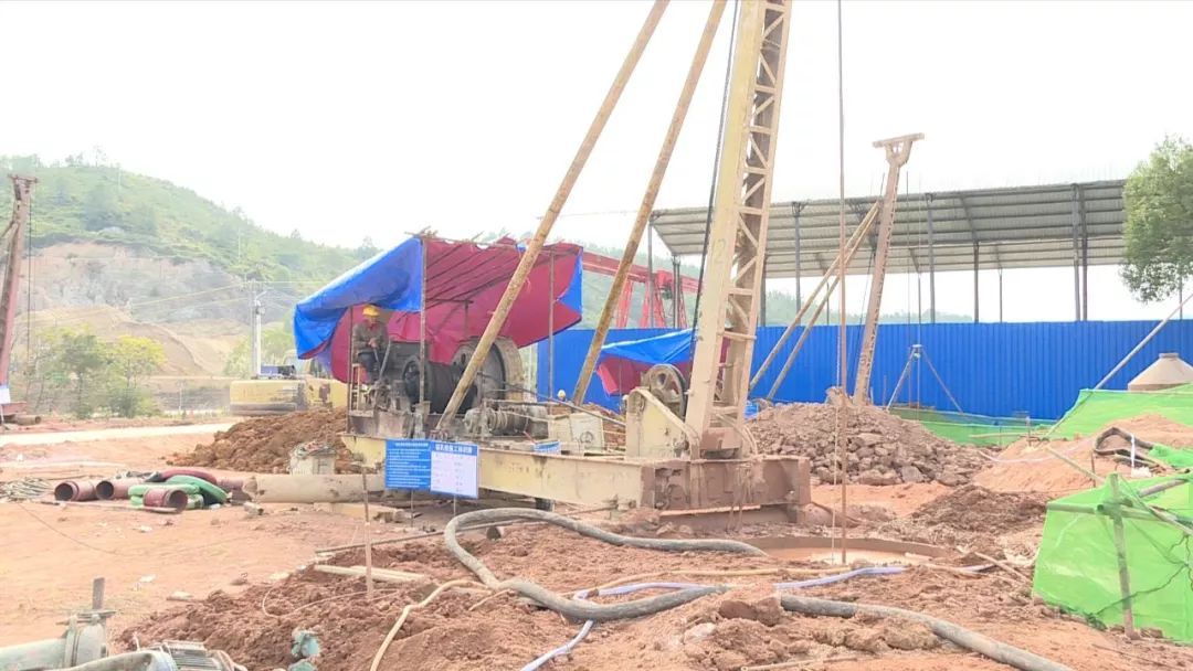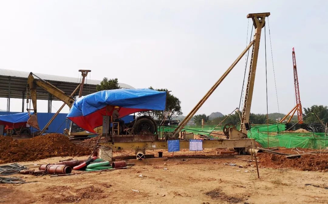 ▲8台桩机在同时进行桥梁桩基施工。