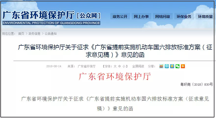 日前,广东省环保厅发布《广东省提前实施机动车国六排放标准方案(征求意见稿)》(下称《意见稿》),其中提及,2019年7月1日起,广东(不含深圳、广州)销售、注册登记的轻型汽车新车应当符合国六标准的排放控制要求。