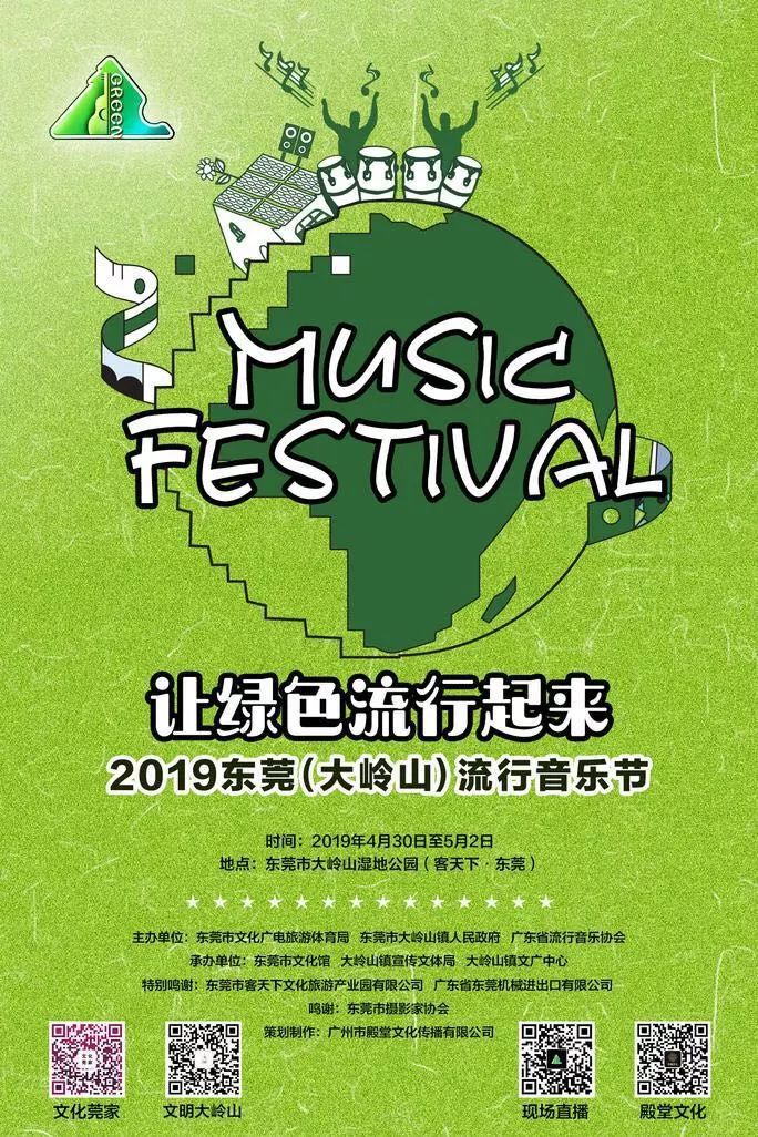 本届流行音乐节以绿色为主题,选在了东莞的森林之城大岭山,演出场地也选定在大岭山公园附近,代表了森林公园和绿色环保理念。