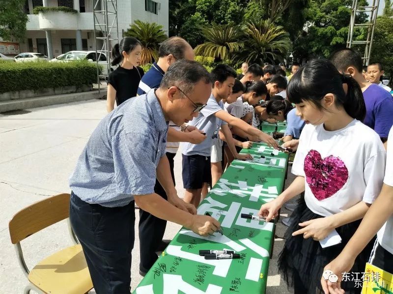 6月5日,石排中心小学开展“美丽中国,我是行动者”签名大行动,呼吁大家参与到保护环境的行动中来。