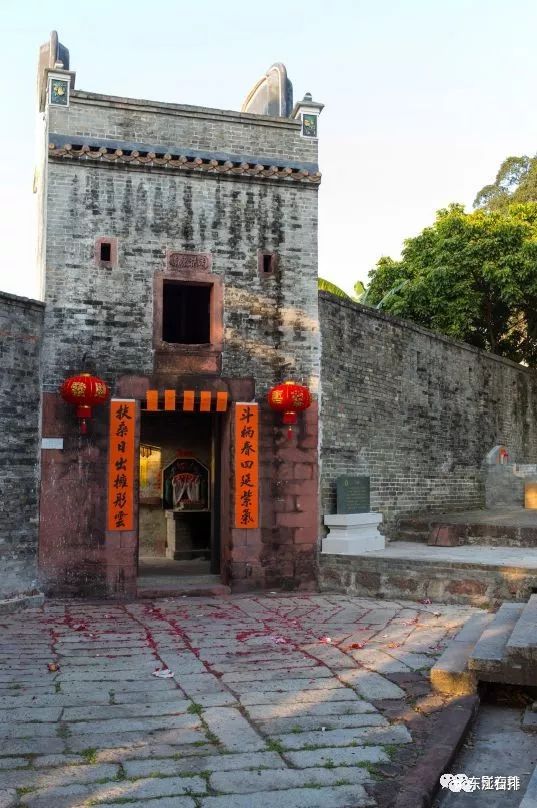 高大的古城墙遮住了视线,只有一座碉楼矗立在蓝天之下,占据了整个眼球。穿过古墙碉楼,塘尾古村的宽阔尽收眼底。