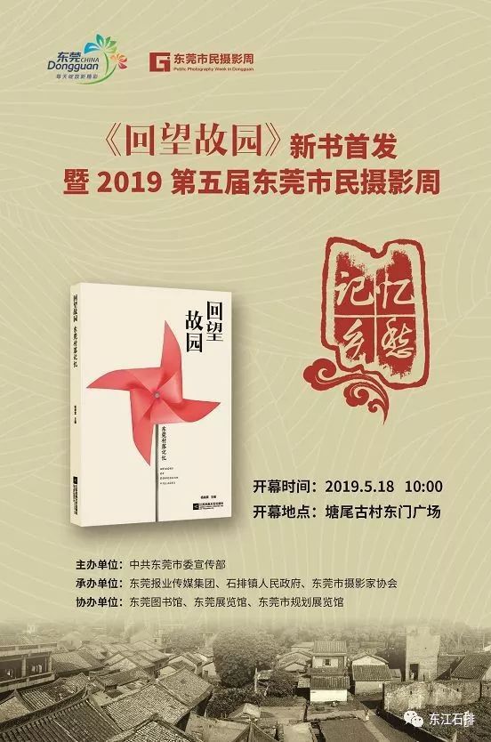 5月18日,《回望故园——东莞村落记忆》新书首发暨2019东莞市民摄影周活动将在石排镇塘尾古村举行。《回望故园——东莞村落记忆》书籍图文展、“全国古村古建筑影像联展”等40个展览,在石排镇塘尾古村、东莞展览馆、东莞图书馆、东莞规划展览馆等4个展场同步展出,用影像记录东莞传统与现代和谐共融、工业文明和历史文化交相辉映的美丽图景,让市民望得见山、看得见水、记得住乡愁。