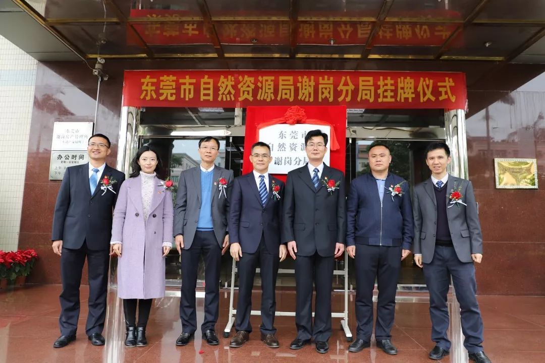 2月25日上午,谢岗镇委书记胡毅峰、东莞市自然资源局总工程师吴颖斌、副调研员张陆保、谢岗镇委委员张桂标等为东莞市自然资源局谢岗分局揭牌。