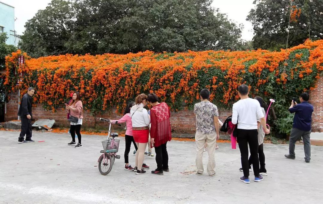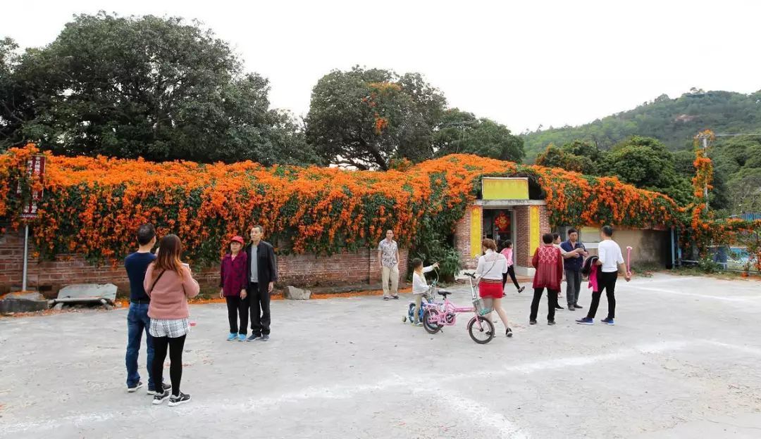 在樟木头观音山脚下的一处农家小院里,满院的炮仗花正值花期,鲜艳似火地勾画出一幅早春的美丽画卷,游客们纷纷前往赏花,感受春的气息。