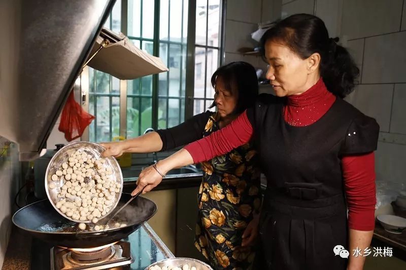 正月十三一大早,李家热热闹闹。他们一家人在为拜灯头爷爷,拜灯母娘娘做准备工作,只见两个靓姨在厨房炒丸仔、据了解,“炒丸仔”是“灯头生日”的传统食物。在制作过程中必须要加入“牙菇”来炒,有“添丁”的寓意。