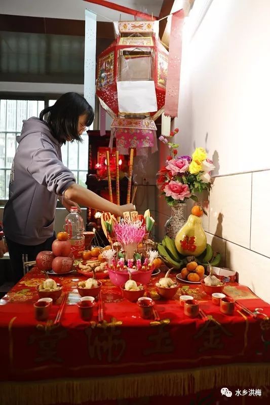 据小编了解,黎洲角村今年共有17户人家喜添男丁,按照洪梅本地习俗。他们分别要在除夕进行“点灯”、年初一“饮灯酒”、正月十三“炒丸仔”、“拜灯头爷爷,灯母娘娘”、“煮九簋”、正月十五“结灯”等传统习俗。