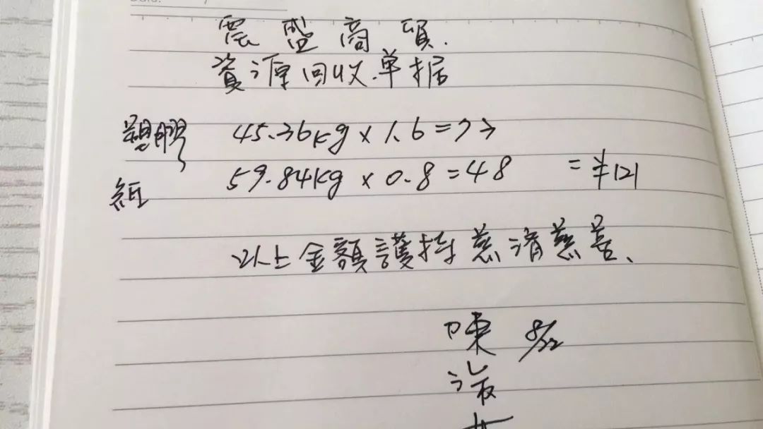 每笔垃圾回收来的钱款都详细记录