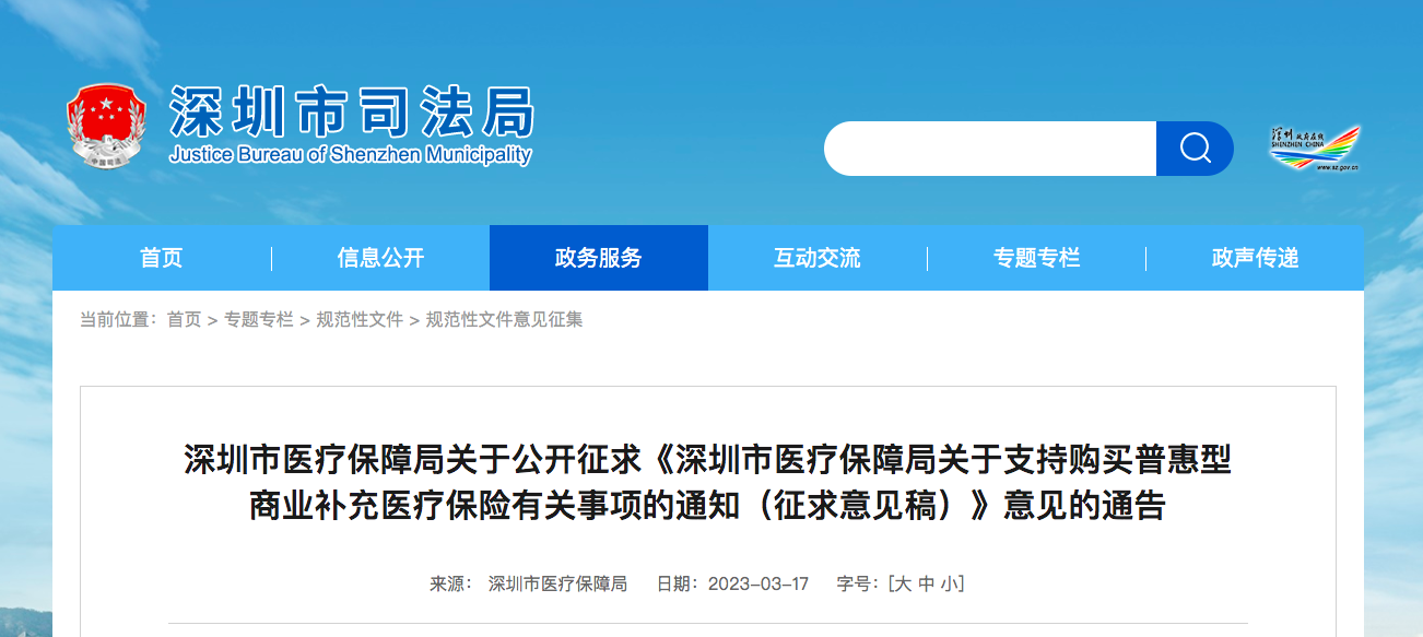 记者从深圳市司法局获悉,深圳日前公布《深圳市医疗保障局关于支持购买普惠型商业补充医疗保险有关事项的通知(征求意见稿)》(下称《通知》)及其起草说明。