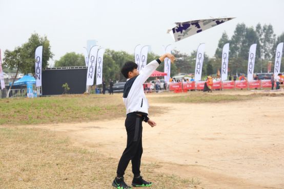 随后进行的是F3K手掷滑翔机表演,由运动员在地面使用无线电遥控设备操纵控制的没有动力装置,通过固定在模型机翼上的手柄销,用手抛掷升空,空气动力作用在固定的翼面上。这个项目需要运动员有很好的身体协调力,就像田径里铁饼项目,需要很好的腰力、臂力,旋转,将模型飞机抛向空中,并快速做出反应进行操控,这也是无动力飞行需要寻找气流获得最大留空时间。这个项目东莞队排在全国前列,在青少赛和公开赛中连续几届获得前三名,并一直保持纪录。