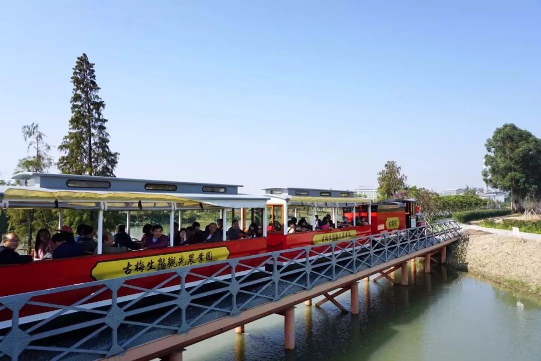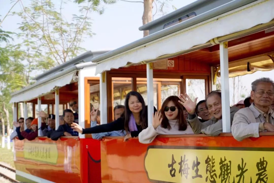 古梅生态农业园以农林景观为主题,休闲观光为核心,集地域特色传统农耕文化展示、现代农业的科普教育、农副产品种养、亲子游乐、特色餐饮、养生养老配套项目、火车休闲娱乐为一体,整体园区倡导慢节奏的生活理念,半天的农业园区游园参观、加深了诗人、联友对当地农作物栽培技术、良种繁育技术的认识,并体验了一把农耕、采摘瓜果的乐趣,一探东莞水乡特色村落,一醉水乡风情。其悠然的农田风光体验,让大家回归了本质生活。