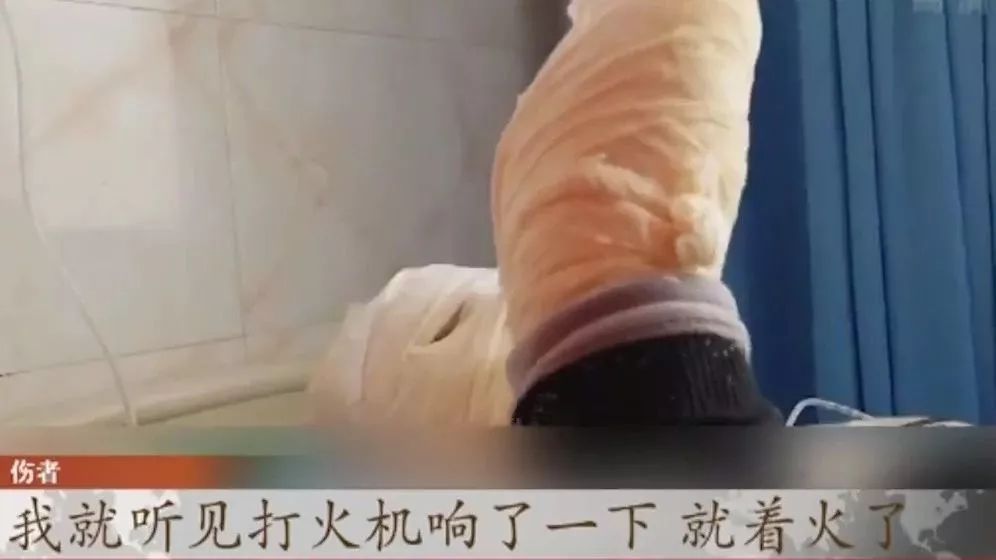 朱先生和莹莹两人瞬间被烧伤,莹莹的头发和脸部被大片灼伤,朱先生的脸被烧伤。