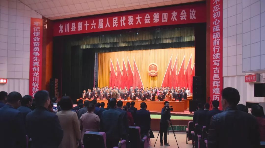 在全体代表和与会人员的共同努力下,龙川县第十六届人大四次会议圆满完成各项议程后,在雄壮的国歌声中胜利闭幕。