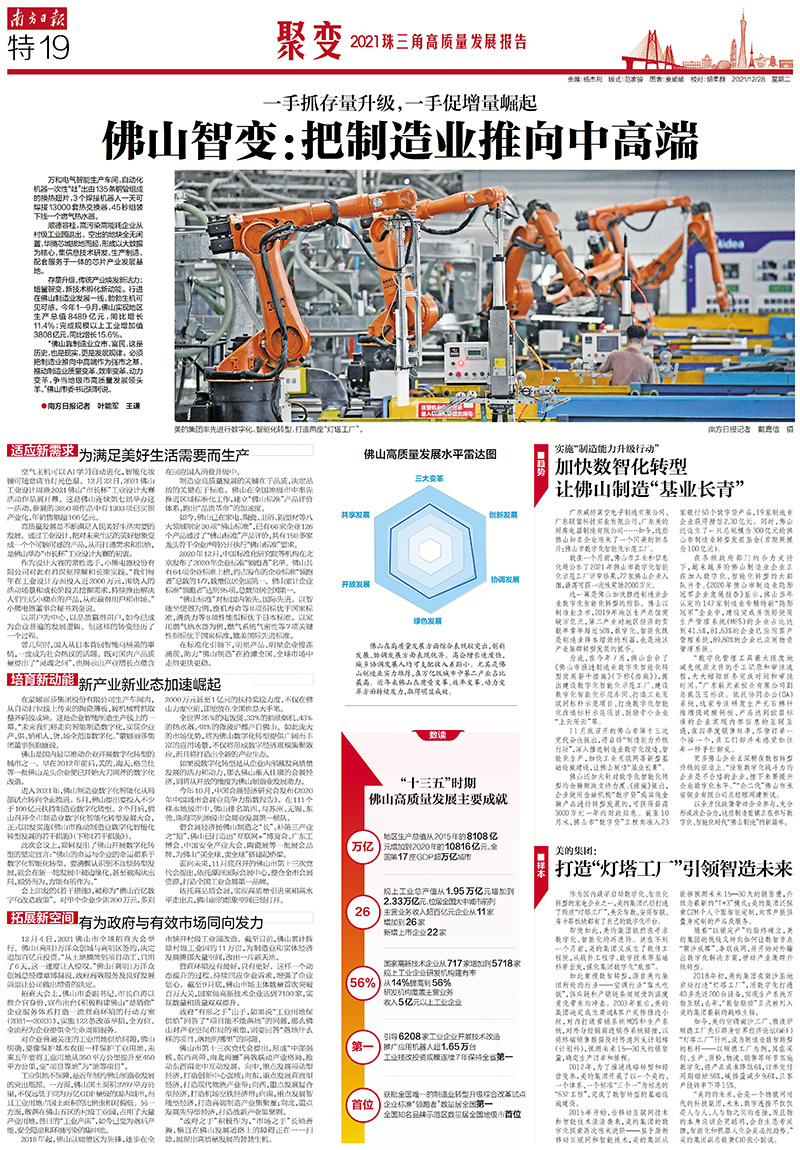 11 月底召开的佛山市第十三次党代会也提出,将启动“制造能力升级行动”,深入推进制造业数字化改造、智能化生产,加快工业互联网等新型基础设施建设,让佛山制造“基业长青”。