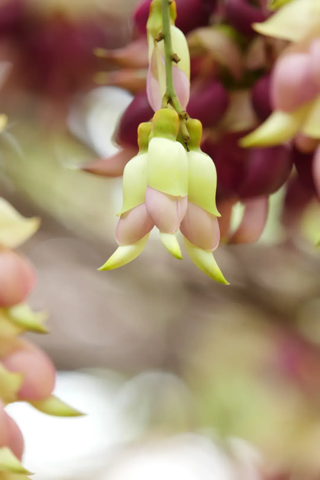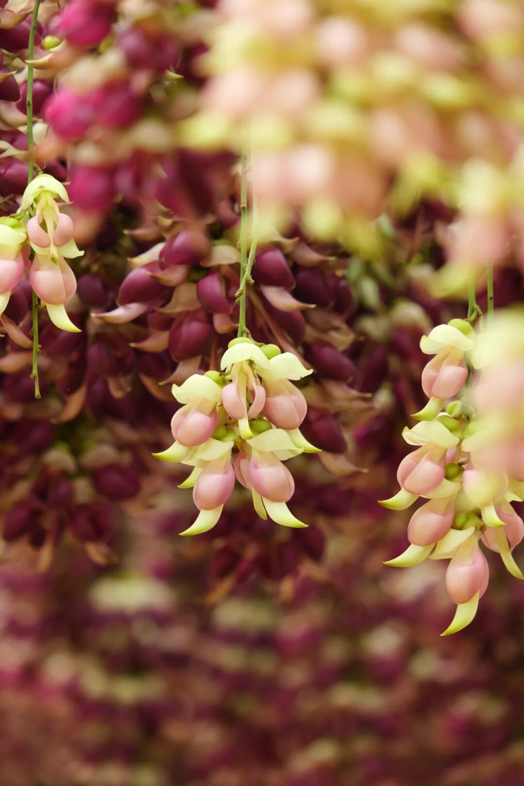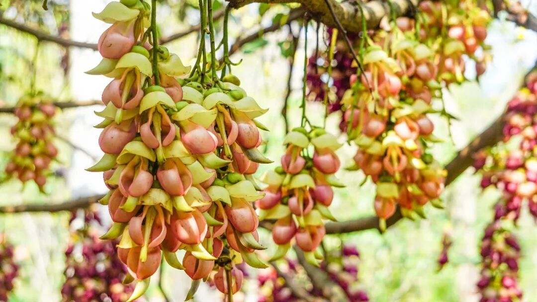粉、紫、绿等各色禾雀花次第盛开,