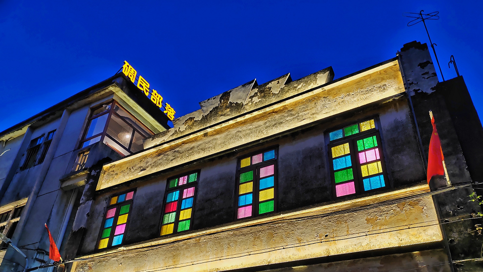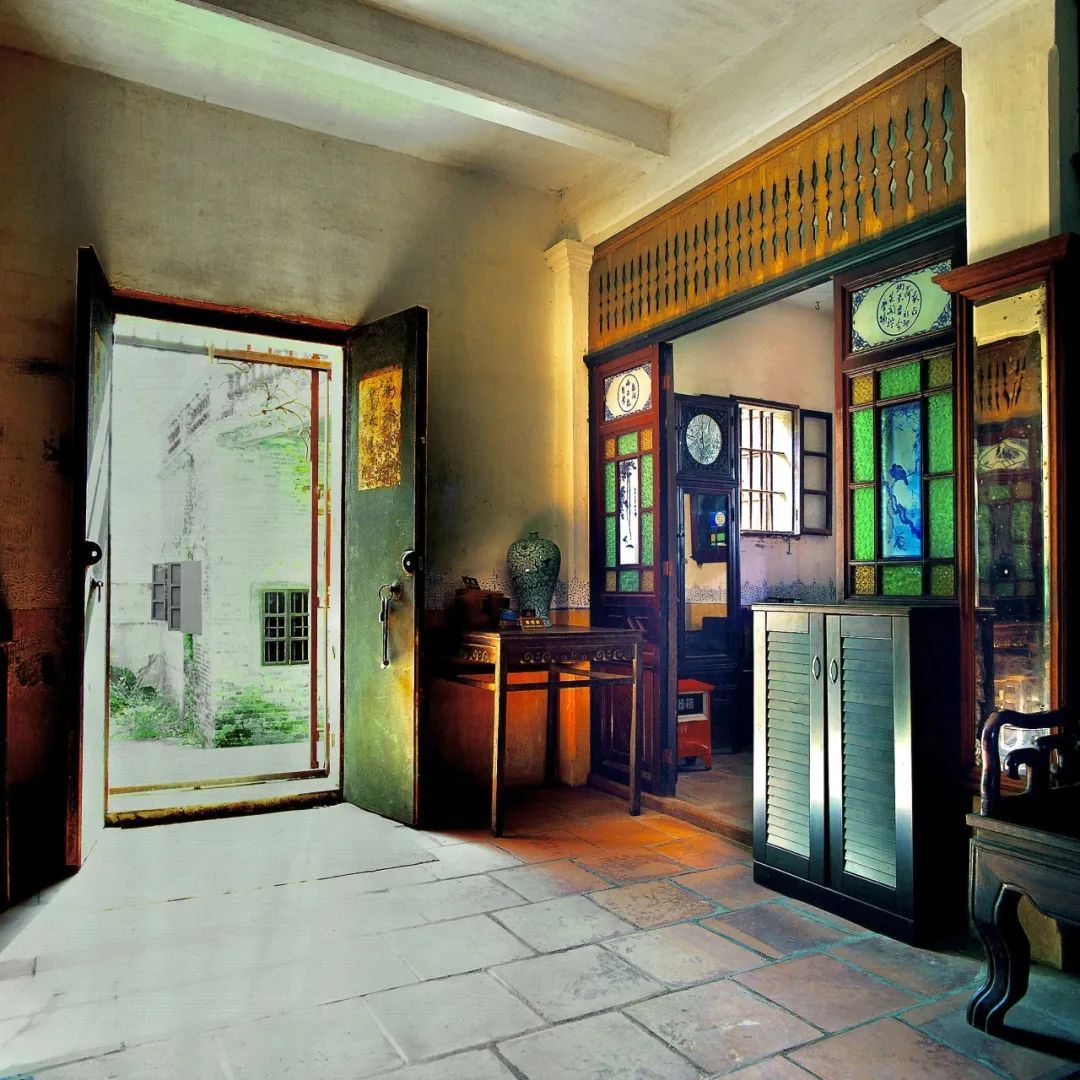 看过《让子弹飞》吗?来铭石楼用黄四郎的视角俯瞰山河吧。百年前的开平,饱受土匪侵扰,碉楼应运而生。碉楼墙体厚实、窗户狭小的设计都是为了防匪。碉楼的门很多是从国外运回的防弹钢材,门上被子弹打过的凹痕至今仍清晰可触。推门可见同样来自国外的五彩琉璃,璀璨如昔,与坚不可摧的钢门形成视觉冲击。