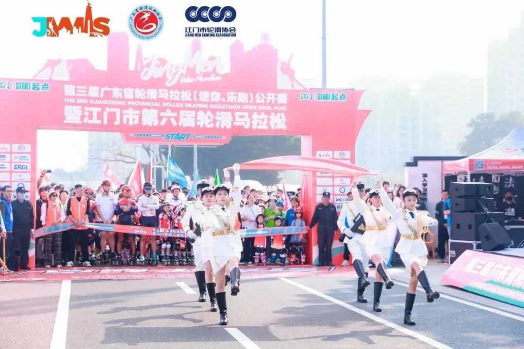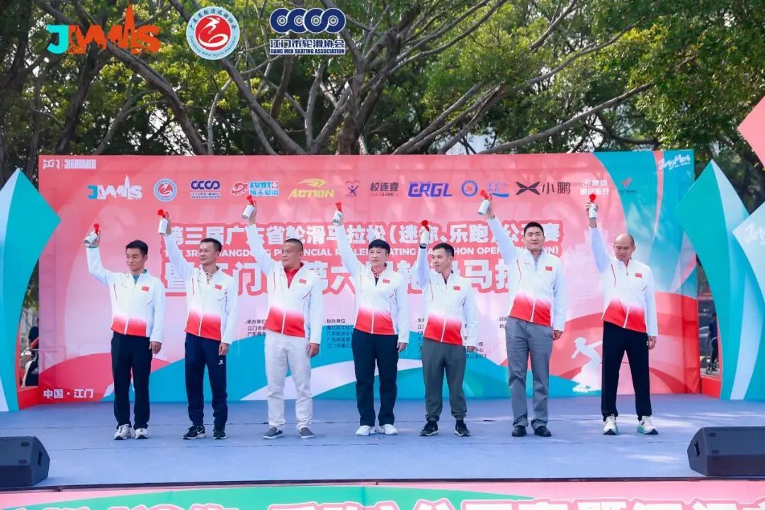 广东省社会体育和训练竞赛中心副主任吕璇、江门市文化广电旅游体育局副局长柳超球、广东省轮滑运动协会会长林家坤、江门市轮滑协会会长魏友林等领导出席开幕式并为赛事鸣笛。