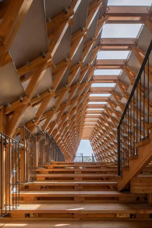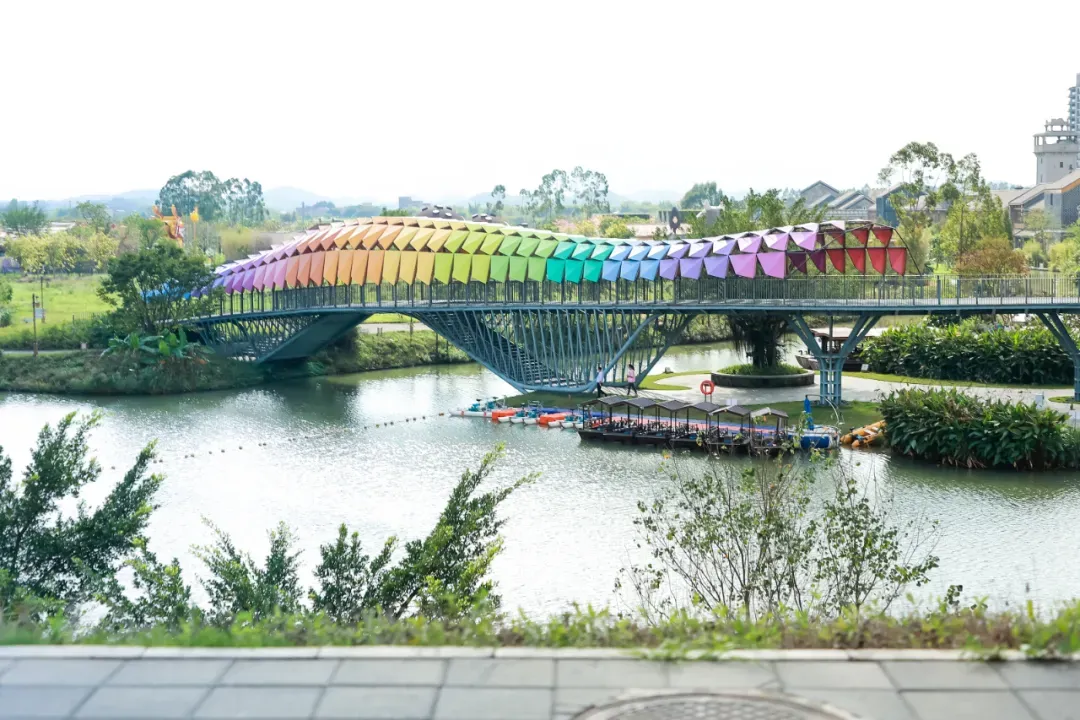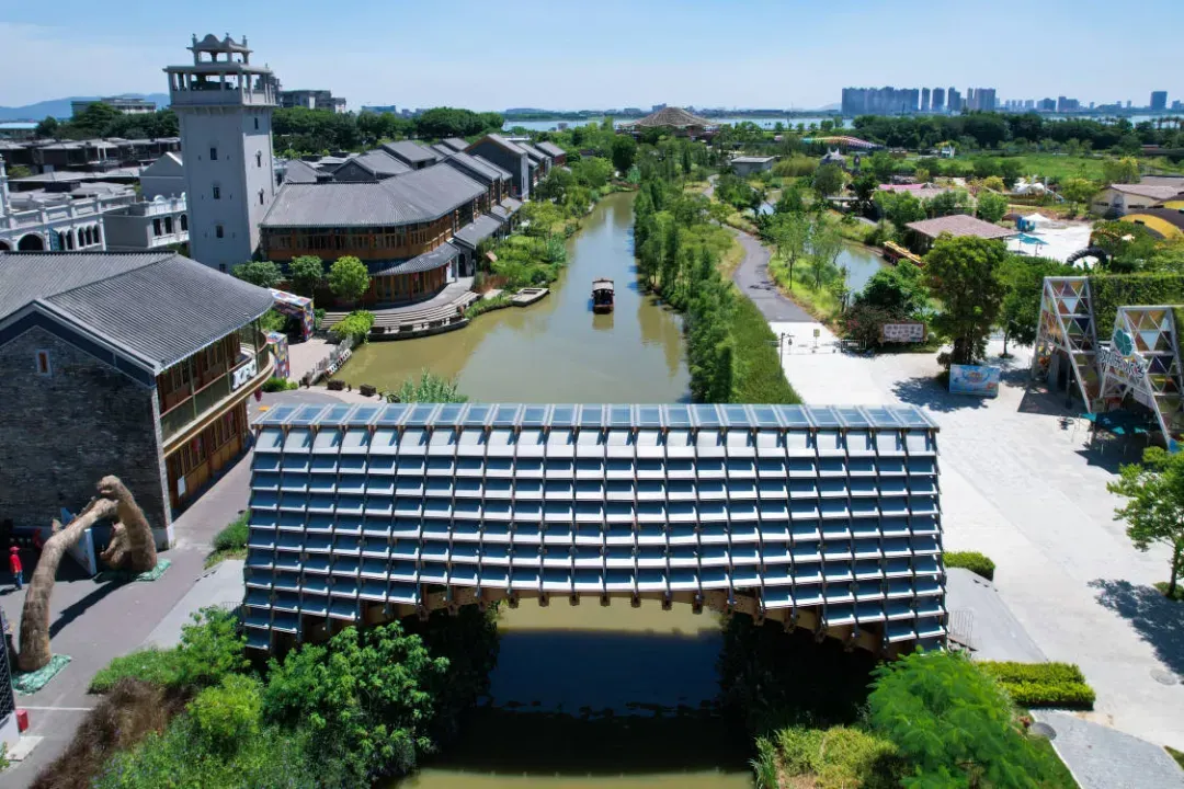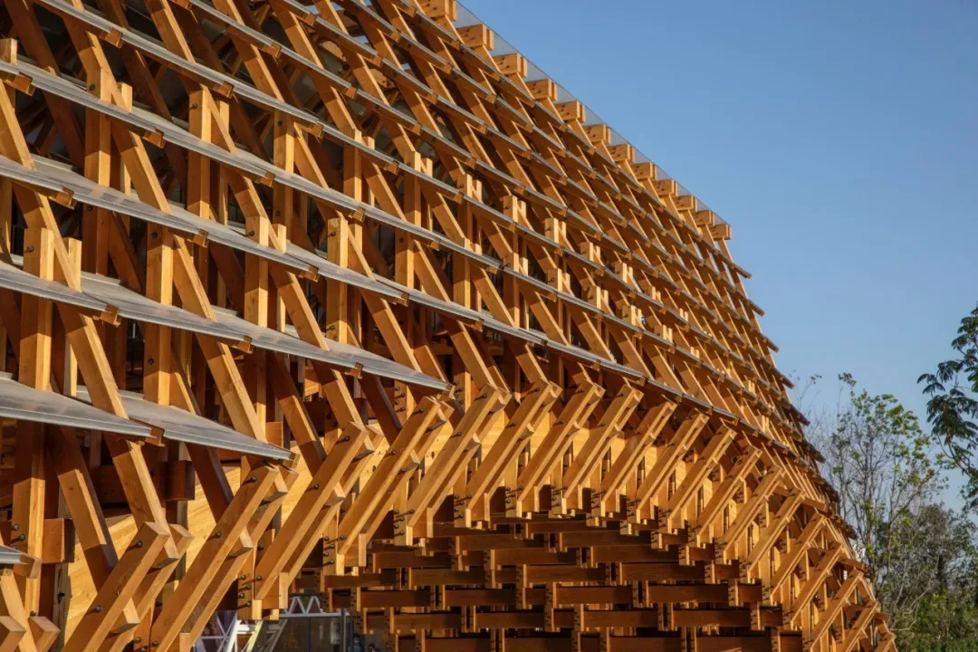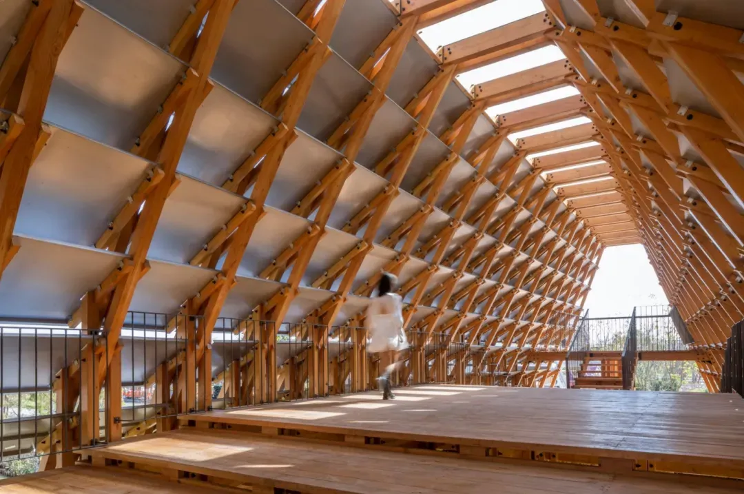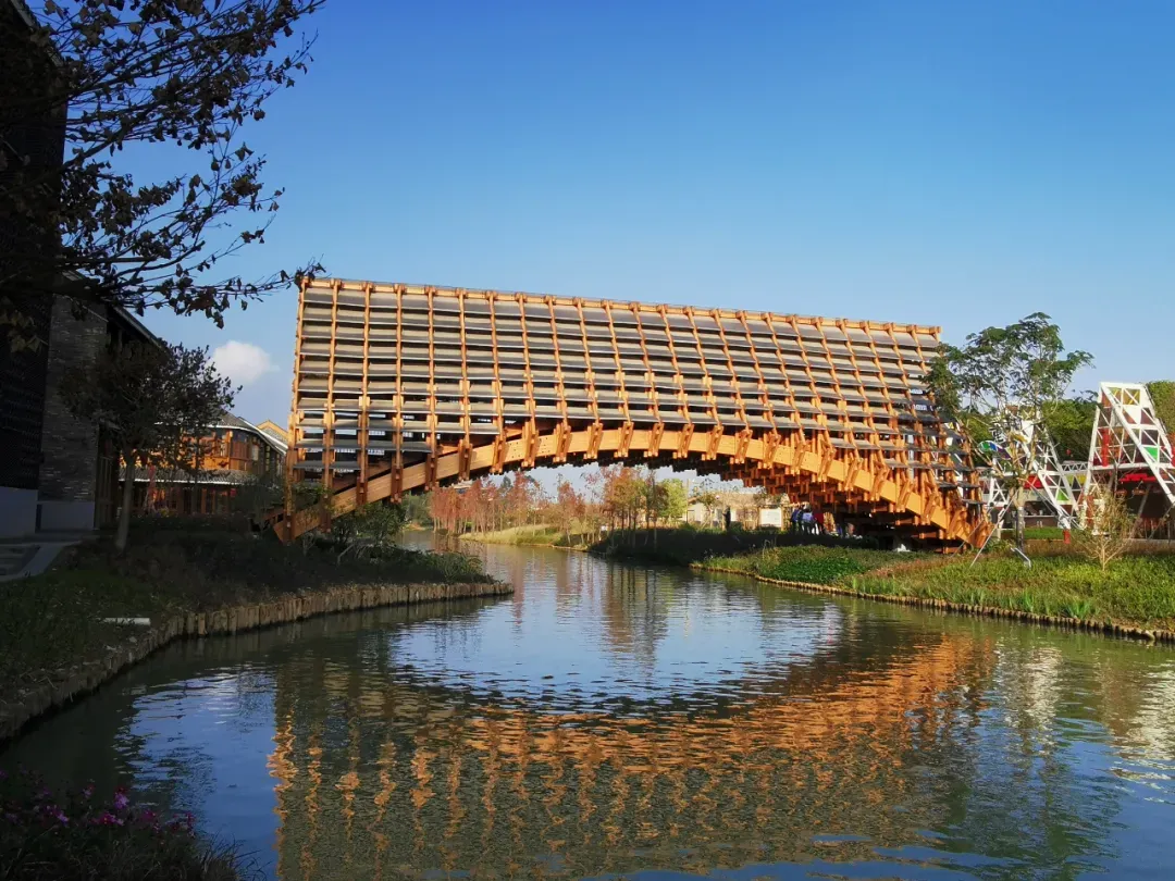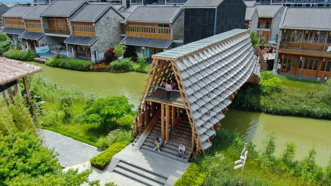 为了区别于一般的城市建筑,“侨一桥”采取自然木材进行“拱桥”建造以重塑岭南水乡文化。