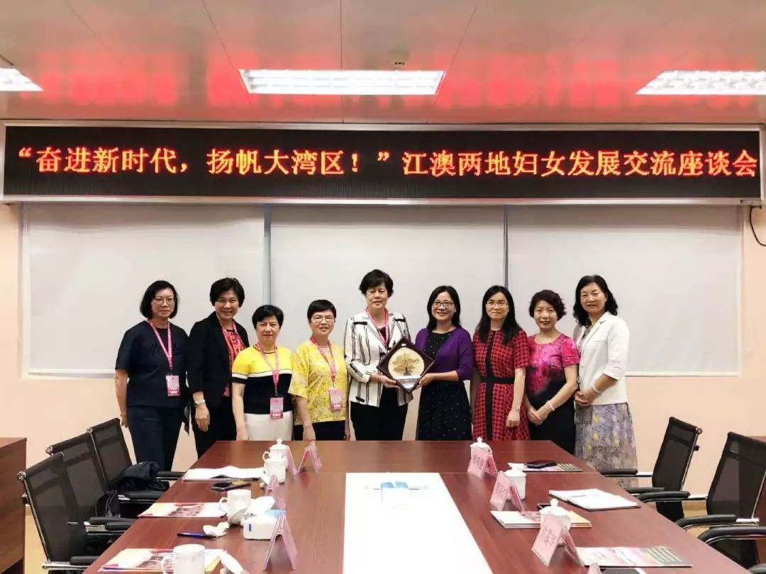 4月26日,澳门妇女联合总会在全国妇联执委、澳门妇女联合总会理事长林婉妹的率领下一行8人来访江门,江澳两地妇联聚首江门,就大湾区建设下的妇女组织的发展与合作进行研讨和交流,市妇联主席林露华、副主席林琼笑参加了交流活动。