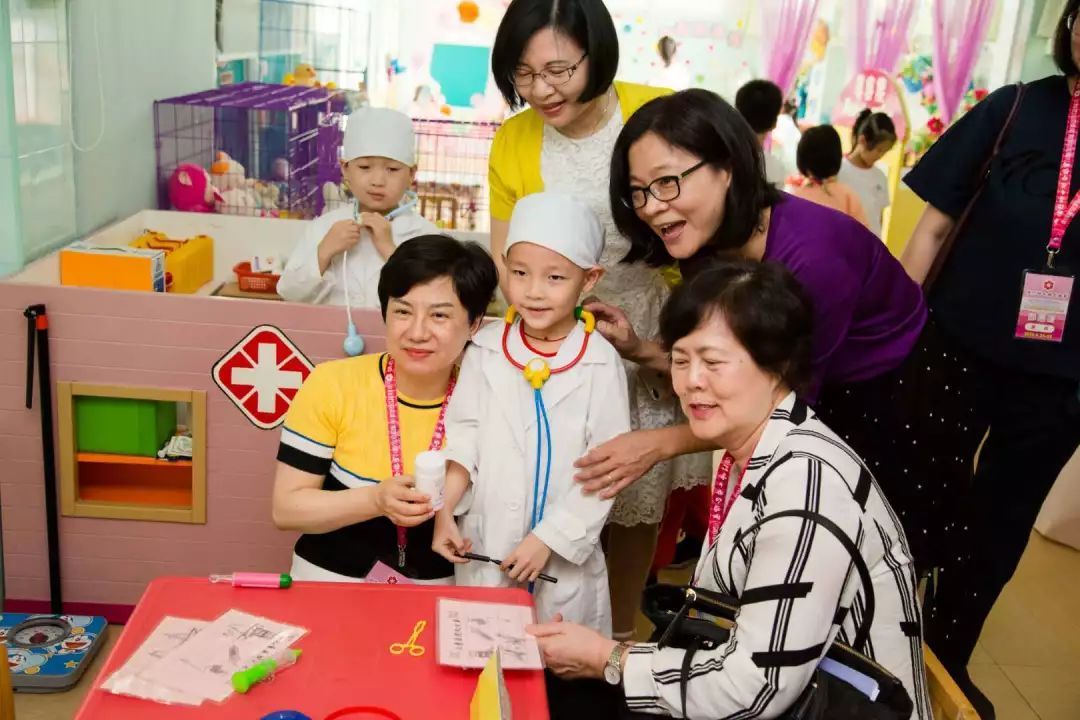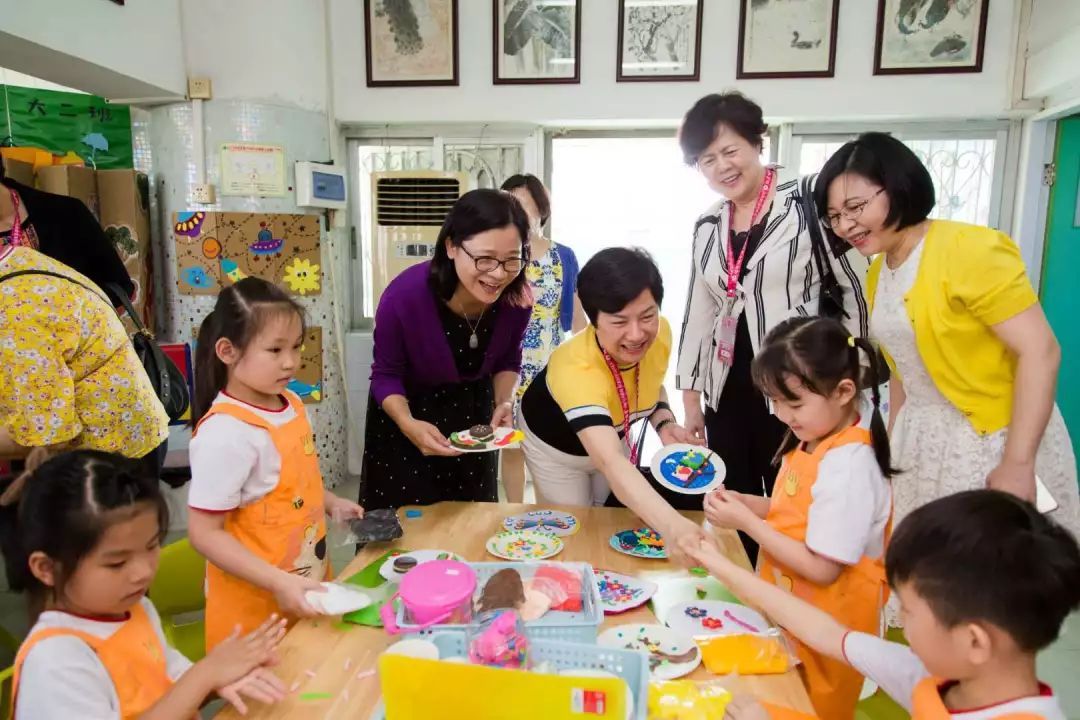 澳门妇联一行第一站来到江门市蓓蕾幼儿园参观。朝气蓬勃的小朋友们正在练习“篮球操”吸引了澳门妇联一行,整齐的挥旗手法和娴熟的运球技术让她们惊叹于蓓蕾幼儿园的教学品牌。在园内的“快乐小镇”、科学实验室、舞蹈室等设施,代表团和小朋友们进行了愉快的互动与交谈。