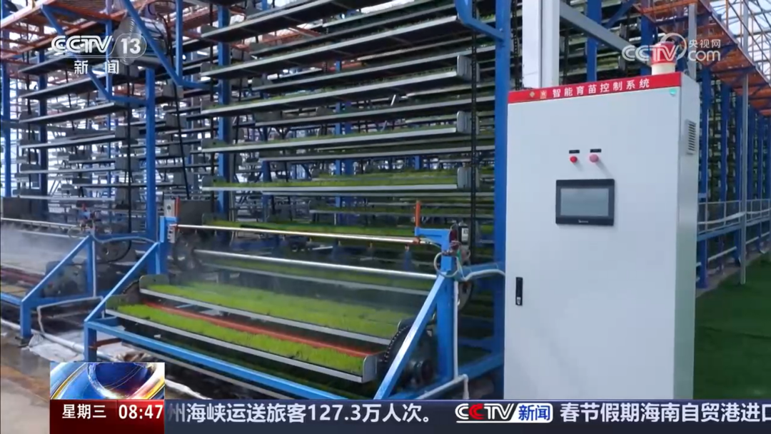 走进“广东第一田”内的广东供销天禾台山智慧农场,在智能育苗工厂里,育秧流水线上自动化机械臂精准摆放秧盘,巨大的循环运动式育秧苗床缓缓将一盘盘秧苗从“地上”送往“空中”。秧苗在离地生长的环境中,享受着智能调控的温、光、水、肥。这就是江门首座智能化立体式育秧工厂的“黑科技”。