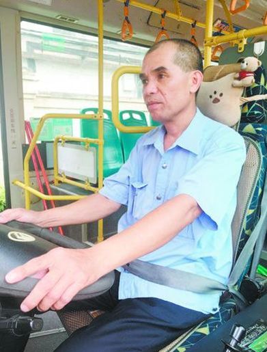 ▲容滚洪现在是1路线公交车司机。韩玲群 摄