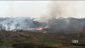 3月17日,恩平市君堂镇石潭村委会西安村74岁的村民郑某与女婿到大坑水库附近的坟地祭祖,期间燃放鞭炮,把山坟左后方的干草引燃,恐慌的郑某与女婿拿起棍棒扑打,但火借风势蔓延开来,越来越大,郑某女婿只好报警求助,在相关人员的积极扑救下,大火两小时后被扑灭。