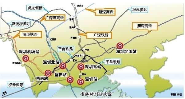 近日,《深圳铁路枢纽总图规划(2016-2030年)》获得中国铁路总公司、广东省人民政府批复。《规划》提到,近期将建设深茂铁路深圳至江门段、光明城至西丽站相关工程。
