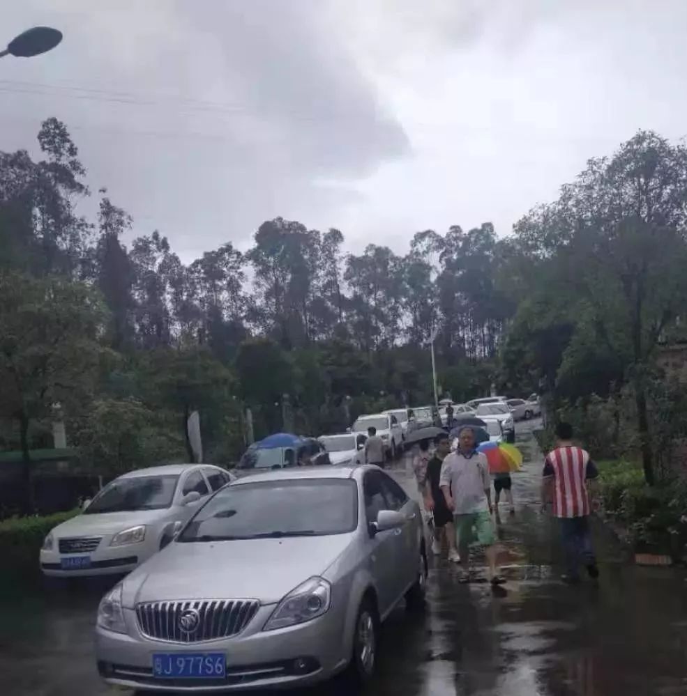 10:00,雨还在下,校园外来送孩子的车辆已经排到了校外一公里左右。