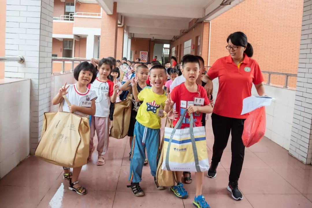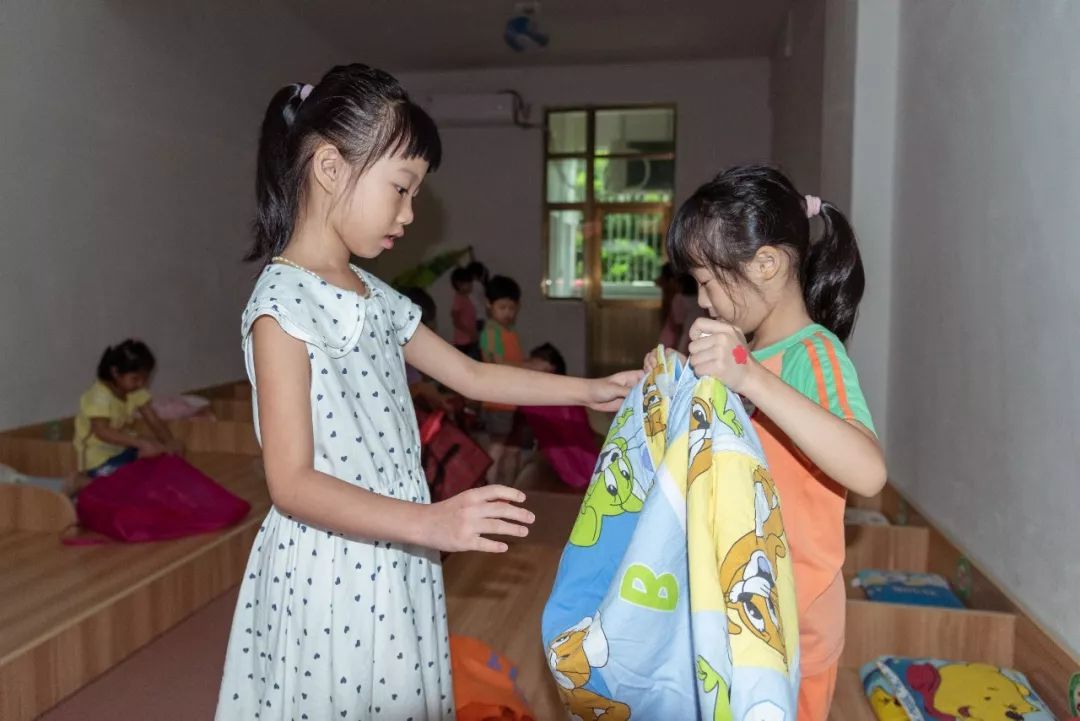 孩子们团结协作、相互帮助,终于整理好了床铺,认领了鞋柜。