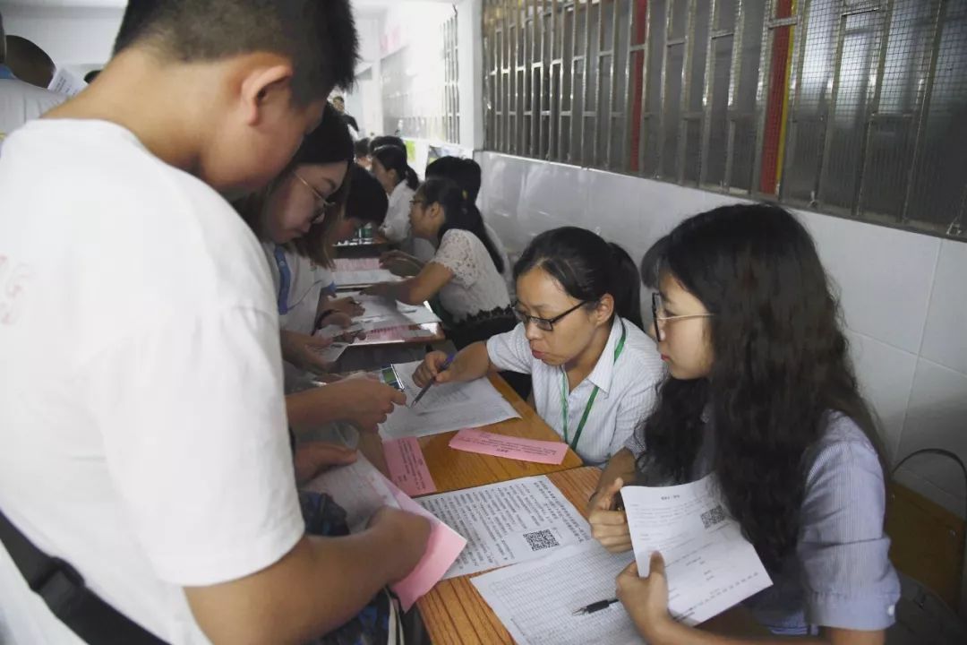 班主任被前来报到和询问问题的家长和学生围起来了,他们几乎是一刻不停地在答疑解惑。