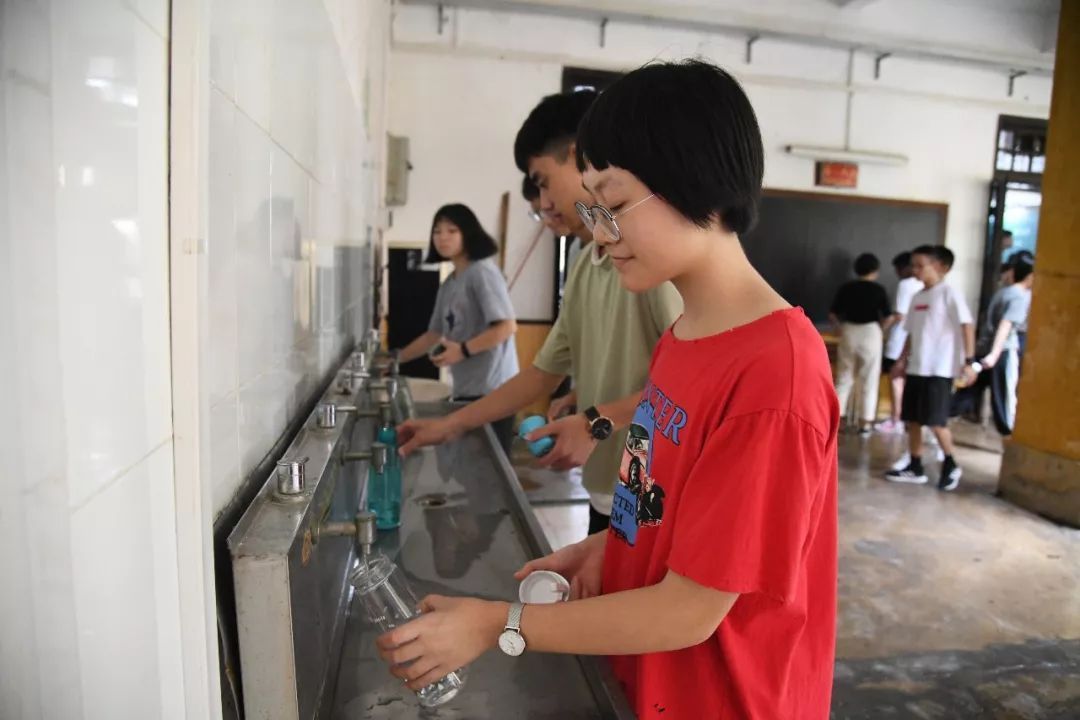 下课了,排队打开水也是一道靓丽风景线。