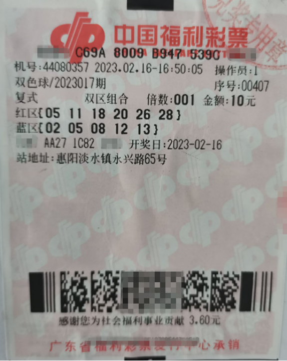 双色球第2023017期于2月16日晚开奖,当期全国共开出一等奖6注,广东中出的唯一一注一等奖花落惠州市惠阳淡水镇永兴路65号44080357网点,这也是惠州今年中出的第一个双色球一等奖。