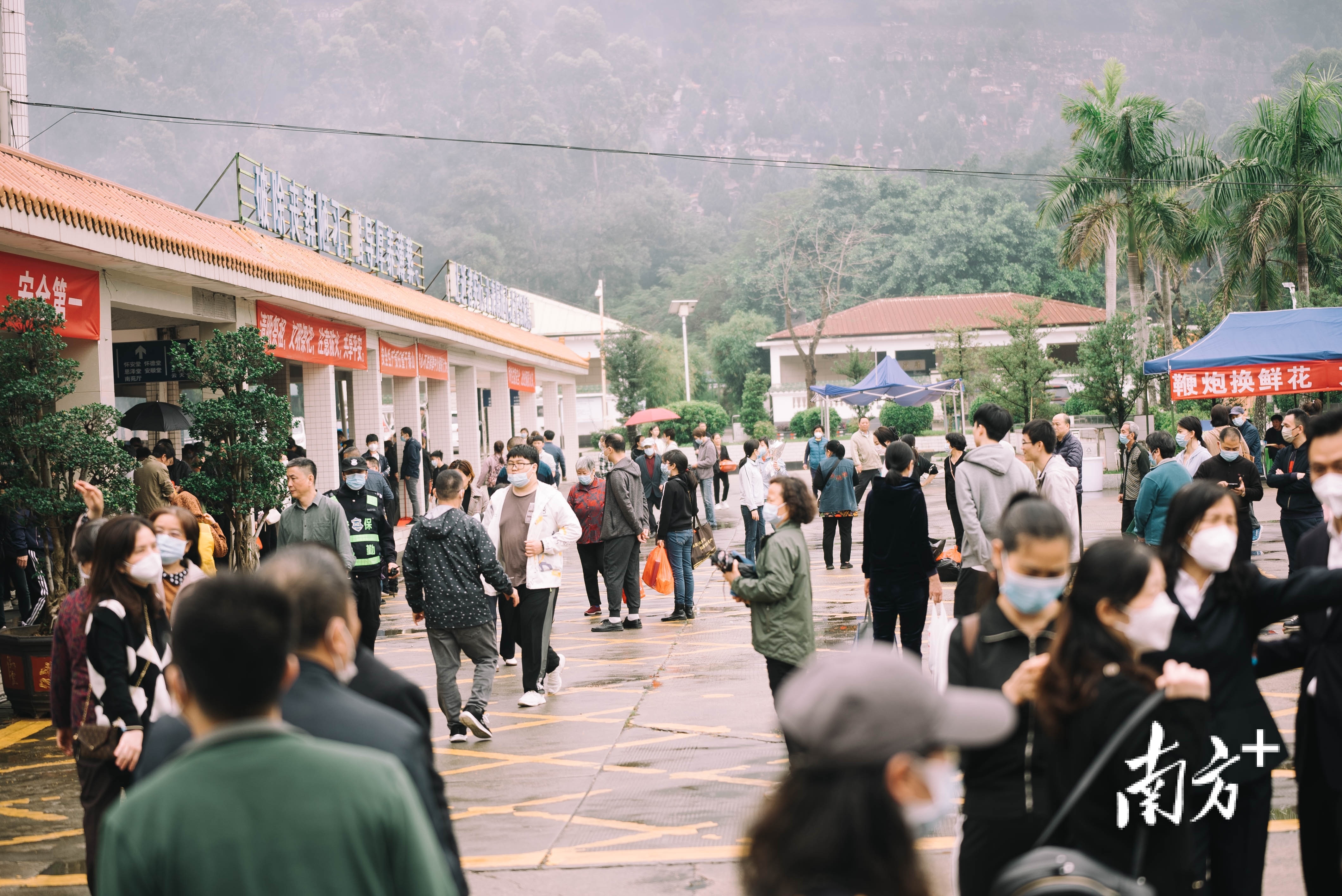 周六,晨间一场大雨,并没有阻挡市民祭扫的脚步。随着雨势渐停,进入惠州市殡仪馆祭扫的家属越来越多。