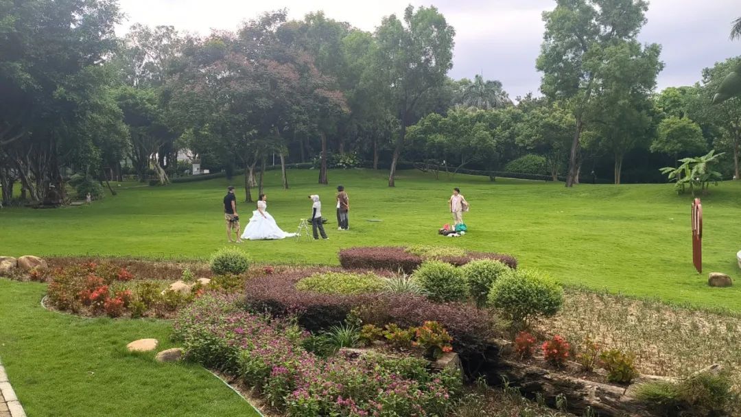 平时,许多情侣会在公园拍摄婚纱照,温暖的阳光透过树叶洒落空中,盈盈绿意搭配纯白的衣裙,纯洁又自然,新人脸上洋溢着幸福的笑容,含情的眼眸全是爱意,被镜头记录,定格成最美的瞬间。