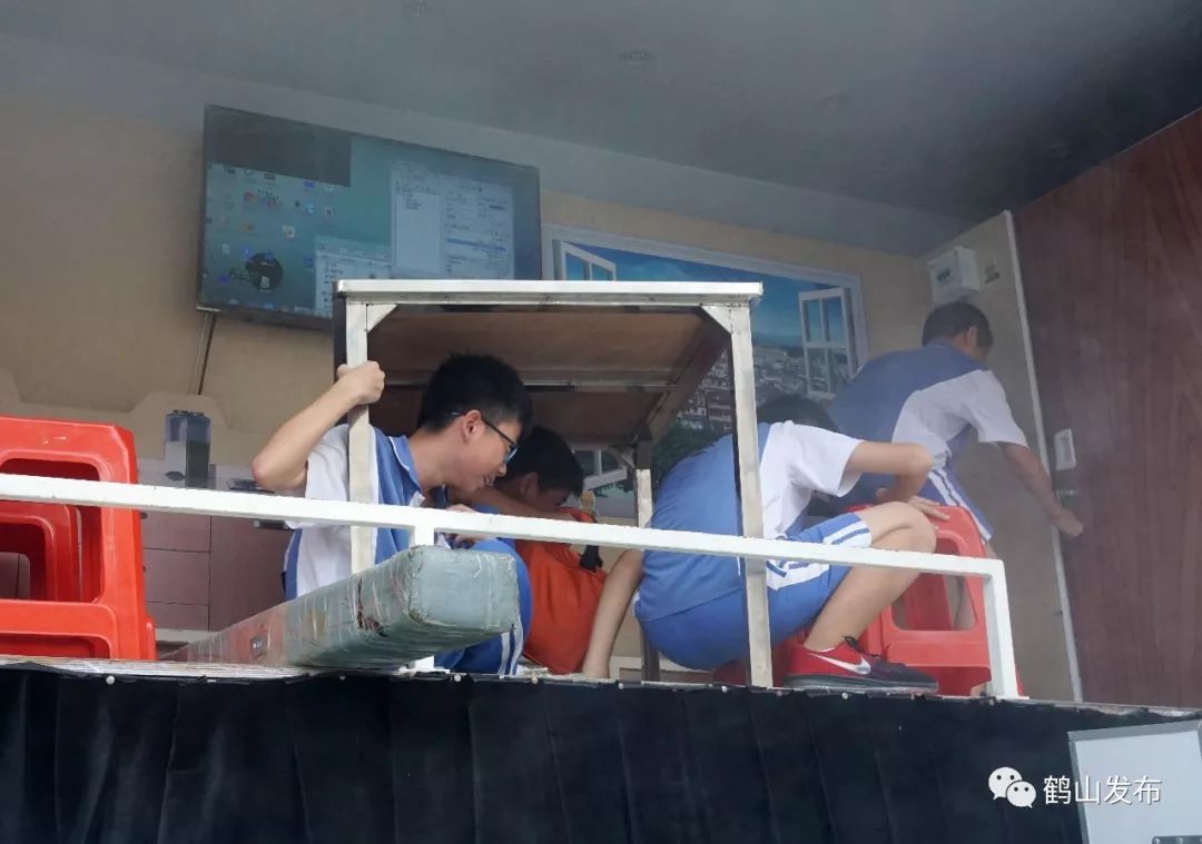 在活动现场,雅瑶中学全体师生观看了江门市应急宣传片、安全知识宣传片,并模拟发生地震,邀请部分学生上台体验,真切感受地震情景,从而让学生掌握地震等灾害事故的应急避险和逃生技能。