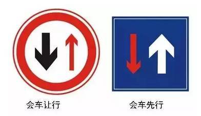 会车让行与会车先行,要记住红色箭头方向的车辆需要让行。